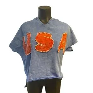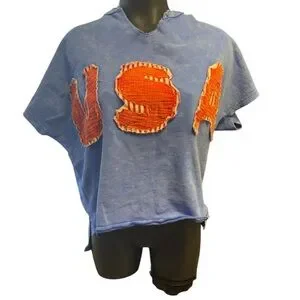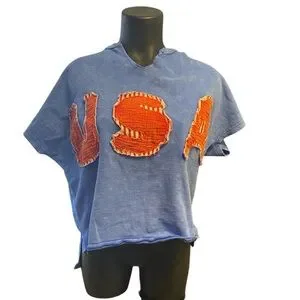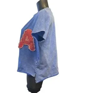 Authentic Mineral Washed Solid USA Patched Knit Top - Blue