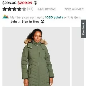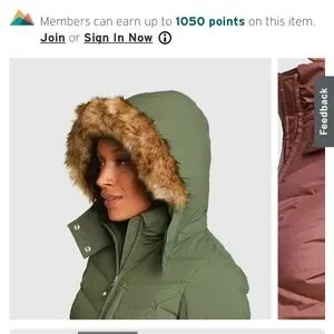 Eddie Bauer Green Fur-Trimmed Hooded Jacket