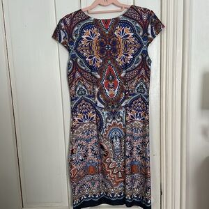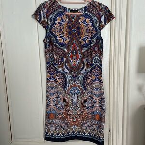 I absolutely love the design and patterning on this dress. Perfect for work. Silky and tailored to accentuate the hips a bit. Only worn once so in perfect condition. MAKE AN OFFER!
