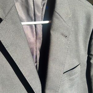 This is the very loved Aldridge jacket, size 40 short, J.Crew Italian wool. Great condition, the only notable flaw is the inside left bottom pocket looks like it had some extra dried up soap/residue/possibly mold? I have not tried to wash it yet. I don’t deal enough with special fabrics, and I don’t want to ruin the item. At first, I thought this was black, but in certain lighting it looks like a very, very dark navy blue. So please buy, knowing that the color may look different in real life. I tried to take photos in multiple lighting scenarios. Open to offers!