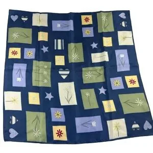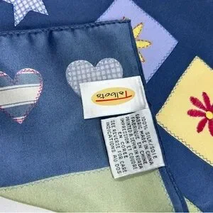 New Vintage Talbots Silk Scarf Blue Green Cottagecore Flowers Hearts Stars Daisy