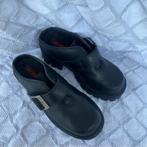 Vintage Harley Davidson Black Leather Chunky Buckle Slip On Platform Shoes 5.5