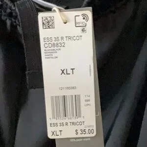 NWT MENS ADIDAS ESS 3S R TRICOT PANT. COLOR IS BLACK WITH BLACK STRIPES. SIZE XLT. COMES FROM SMOKE FREE AND PET FREE HOME. THANKS FOR LOOKING.