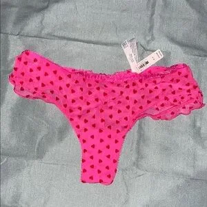 Cute and flirty thong with heart pattern. Perfect for adding a playful touch to your lingerie collection.