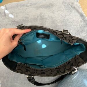 Coach 8K49 Signature Jacquard Black Leather Shoulder Bag
