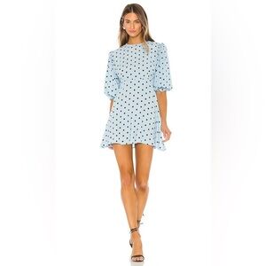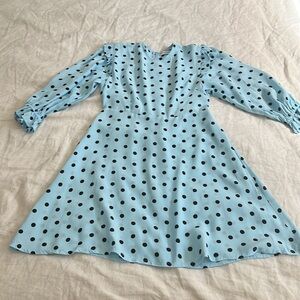 Faithfull the Brand Edwina Mini Sylve Polka Dot Print Blue Dress Sz XS / 2