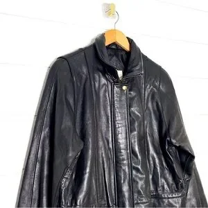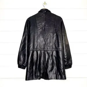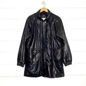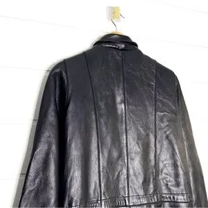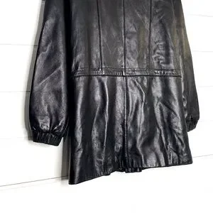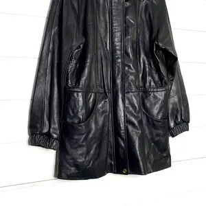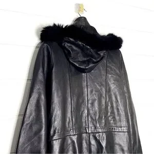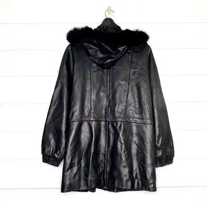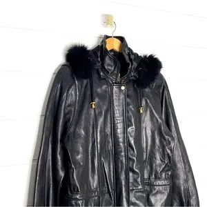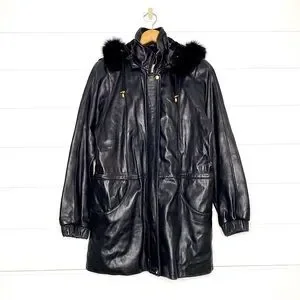 Vintage Genuine Lambskin Leather Black Parka w/ Fox Fur Trimmed Removable Hood