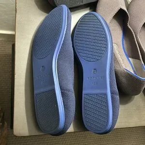 3 pairs of Rothy’s flats, some slight wear and a white mark on the purple shoes (may come off) but good used condition otherwise. All size 10.5. Discounting price due to slight wear and white mark on purple shoe.