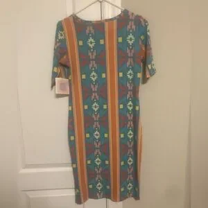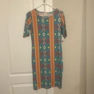NWT new with tags. Never worn. Multi colored print. Short sleeve dress.