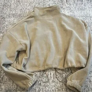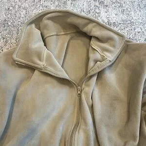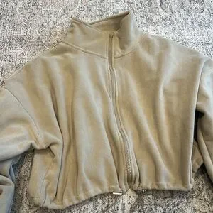NWOT new women’s fleece, zip up beige tan cream jacket coat hits at waist adjustable sides to crop warm cozy size large boxy over size fit