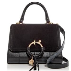 See by Chloe Joan Black Leather Gold Charm Top Handle Crossbody Purse Luxury NWT