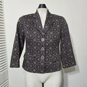 Ann Taylor Loft Brown Geometric Medallion 3/4 Sleeve Blazer.