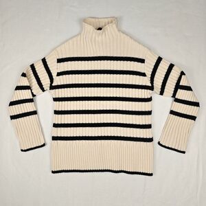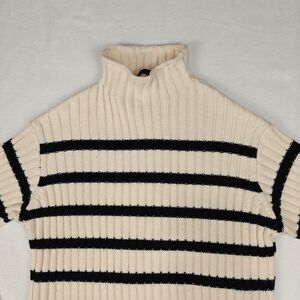 Zara Women’s Striped Mock Neck Rib Knit Sweater Size S Minimalist Preppy