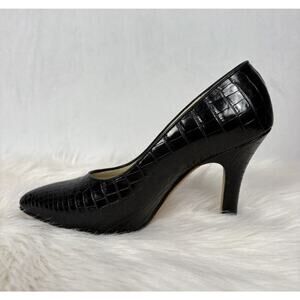 Manolo Blahnik Stiletto Pointed Toe Pumps Black Alligator Crocodile Size 37