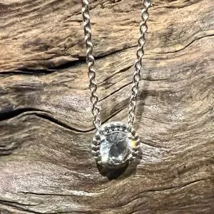 Beautiful necklace with a very sparkling round zirconia with trillion-cut that provides a very sparkling effect. It is very minimalist and elegant, luxurious and a must have piece of jewellery, the stone sparkles like Swarovski. The chain is a cable style made of 925 sterling silver very strong and measures 18” in total but it’s adjustable from 15” to 18”.