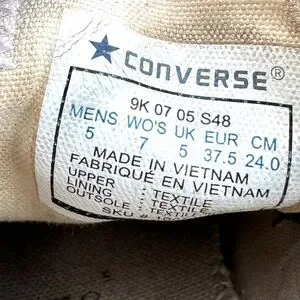 Rare Converse Chuck Taylor All Star Sneakers. Low top lace up shoes. Fun graphic comic cartoon animated graffiti print in rainbow colors: black white green blue red orange yellow.