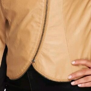 Lisa Rinna Camel Brown Faux Leather Cropped Jacket Belle Gray size L