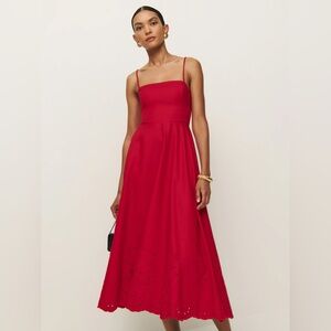 NEW Reformation Cherie Midi Cotton Dress in Lipstick Red | size 0 / XS