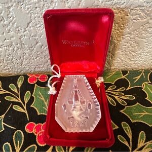 Waterford Crystal 12 Days of Christmas Ornament Collection. A complete set of 12 beautifully designed ornaments - each representing one of the 12 days of Christmas gifts and dated consecutively from 1984-1995. Each ornament was etched and crafted of premium crystal in Ireland, and is in a signature red velvet drawstring pouch and protective red velvet box. They have never been used and are in mint condition. About half have a booklet as well. Pet and smoke free home.
