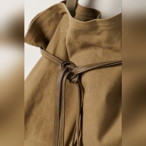 ●Features: Tote style, slouchy design, canvas fabrication, leather tie sides, top handles, cinched closure, interior zip pocket