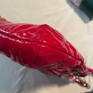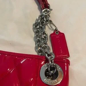 Coach Poppy Liquid Glass Red Quilted Shoulder Bag!! Needs TLC Great Bone…