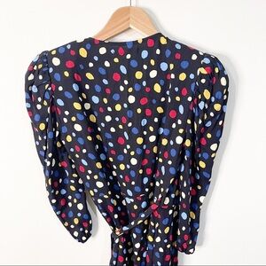 Reformation Black Polka Dots Fiesta Shoulder Pads Wrap Jaylee Dress Size Small