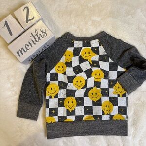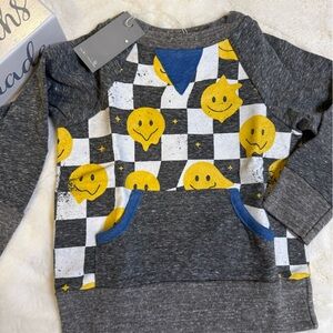 NWT sweatshirt with kangaroo pocket really fun smiley face and checkerboard print brand carried at Nordstroms