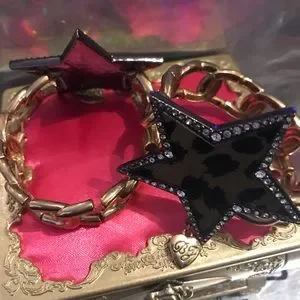 Gold glitter leopard star shaped stretchy chain bracelet with crystal rhinestone embedded edge bj signature heart charm