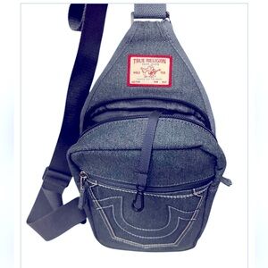 True Religion Unisex Indigo Blue Denim Grohl Sling Bag New With Tags