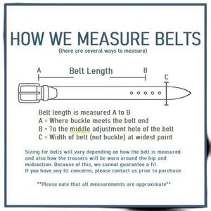 Belt Length: 38 inches (heel of buckle to middle hole)