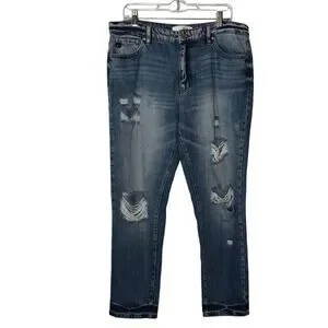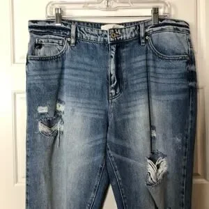 KanCan Womens Artemis High Rise Boyfriend Distressed Jeans Size 13/30 Med Wash