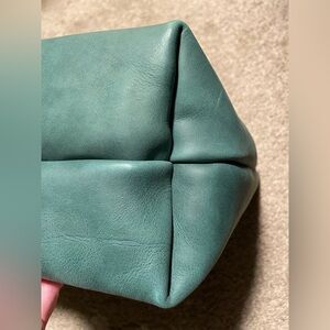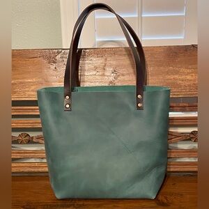 Portland Leather Goods Medium Classic Tote in Surf. Brand new, never used tote with grizzly handles (no tags, the brand does not use them). This is a gorgeous bag, but I don’t reach for totes very often. I am the only owner; purchased as AP direct from PLG. It has a few marks typical to this type of leather, some scuffs on the bottom and a wrinkle on the back that is slightly darker. Please look at all photos prior to purchase. Item comes from a smoke free, pet friendly home but the pets don’t carry purses. :)
