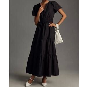 Anthropologie Somerset Maxi Dress Size SP Black Cotton Minimalist Neutral Petite