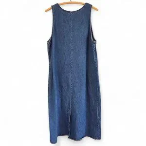 Lands End Womens Regular Sleeveless Denim Midi Shift Dress Size 12 Classic Prepp