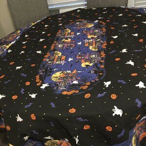 Fabric Halloween Haunted House Oblong Tablecloth 60x80 WTappestryShelf