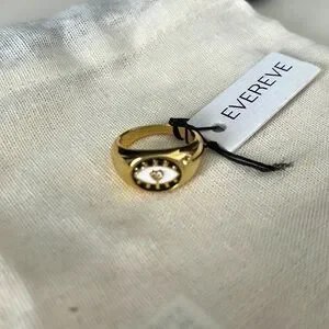 Evereve Elena Evil Eye signet ring. Gold navy white, size 6, nwt