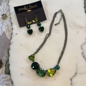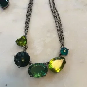 Chunky multi colored greens necklace with earrings. Get your Green for March!