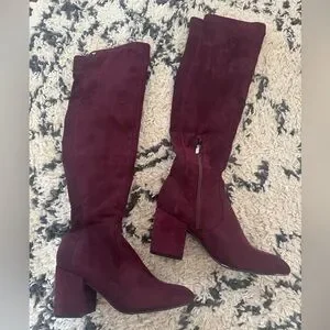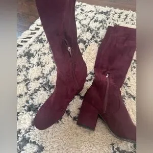 Marc Fisher Over the Knee Faux Suede Boot in Loran Burgundy. Size 8.5. EUC