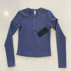 NWT 90 Degree By Reflex Womens Skylar Ribbed Henley & Ribbed Blue Long Sleeve XS