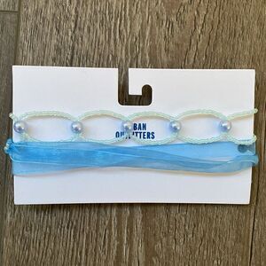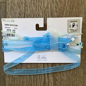 Urban Outfitters Aqua Blue Beaded Ribbon Choker Wrap Necklace