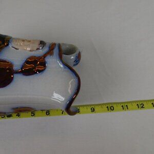 Pre-owned - Antique, scuffing consistant with age - small pinpoint nicks ("flea bites") - there appears to be a hairline crack in the bottom - best used as a display piece