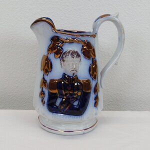 Antique Flow Blue Ceramic Copper Luster Commemorative Jug Cambell Havelock FLAW