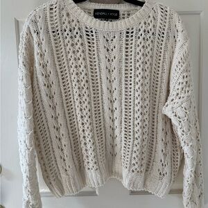 Cozy knit sweater with intricate patterns. Perfect for layering.