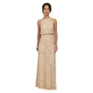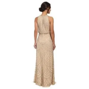** Adrianna Papell** Women's Halter Art Deco Beaded Blouson Dress Nude 0