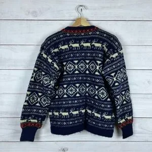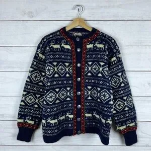 Vintage 60s Norway Fair Isle Wool Cardigan Sweater Small