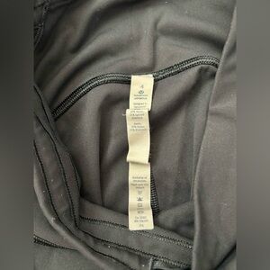 Lululemon Capri Leggings. GOOD condition. No tears or odor. Attractive mesh that runs halfway up both sides of the leggings. Attached tags. Size 4. Black.