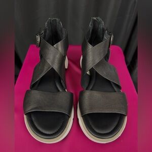 Sofft Mackenna Black Pebbled Leather Sport Easy On Back Zipper Sandal 9M NWOT