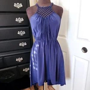 REBECCA TAYLOR "Macrame Cami Dress" - Marine Blue - Size 0