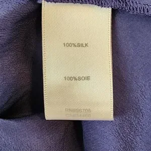 Cute, lightweight, and perfect for the warmer months ahead! Gathered elastic waist, hi-low hem. 100% silk. Fringe accents at the macrame yoke. In EXCELLENT preloved condition.