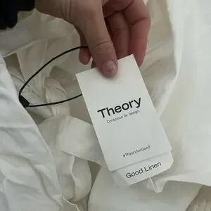 NWT THEORY Ventura Tie Back Stripe Cotton Midi Dress in white. Theory Eco Crunch Tie-Back Midi Dress